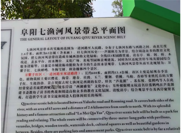 阜阳七渔河风景带标牌出现多处错误,官方回应来了!-阜阳旅游