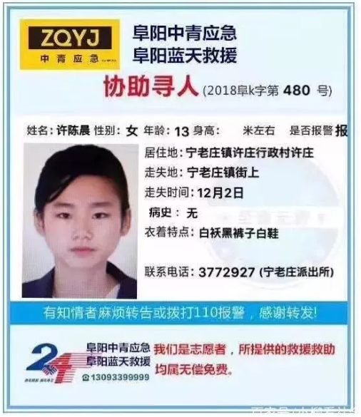 扩散!阜阳13岁女孩失联,已超30个小时,家人急疯!