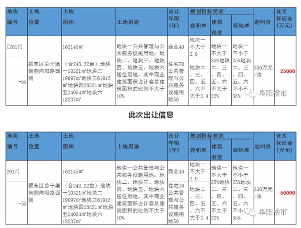 阜阳土拍保证金果然降了,流拍地块再次出让!