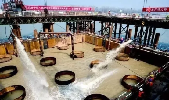 2017年3月29日,商合杭铁路又有新进展,淮河特大桥某主墩钢围堰下沉成功到位