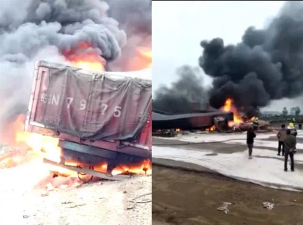 2018年5月21日早6时许,在省道256与阜曹路交叉口,一辆半挂货车与一辆货车相撞,致两车起火燃烧。造成1人当场死亡,3人受伤。初查,货车当时左转弯,与由东向西行驶的半挂货车相撞。目前,事故正在进一